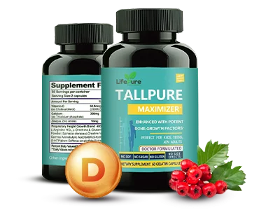 Try Tallpure Maximizer: Designed to support height growth of adults & teens as it blends traditional wellness ingredients like Hawthorn & Malt with Calcium and Vitamin D for strong bones, Iron Lactate for growth, and Lysine for muscle support.